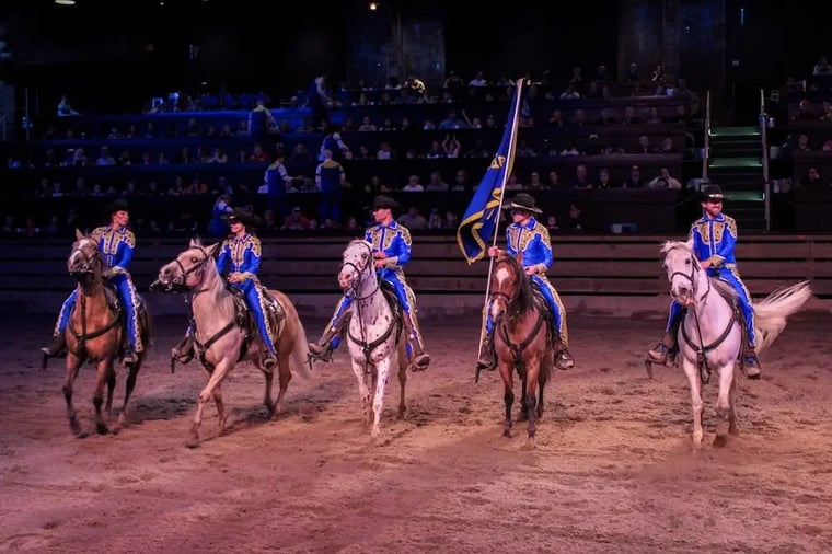 Are you in the mood for a high-spirited adventure? Visit us at Dolly Parton’s Stampede in Pigeon Forge! Our dinner show in Pigeon Forge features 32 magnificent horses and a cast of talented trick riders, along with some friendly competition. Enjoy stunning musical productions, spectacular special effects, aerial performances, and more. The best part is that while you watch, you’ll be feasting on a delicious four-course meal that will satisfy all your country cravings. The feast includes Our Own Original Creamy Vegetable Soup, a Hot Homemade Biscuit, a Tender Whole Rotisserie Chicken, a Hickory-Smoked Barbecued Pork Loin, Buttery Corn on the Cob, an Herb-Basted Potato Wedge, a Hot Flaky Apple Turnover, and unlimited Coca-Cola®, tea, or coffee.